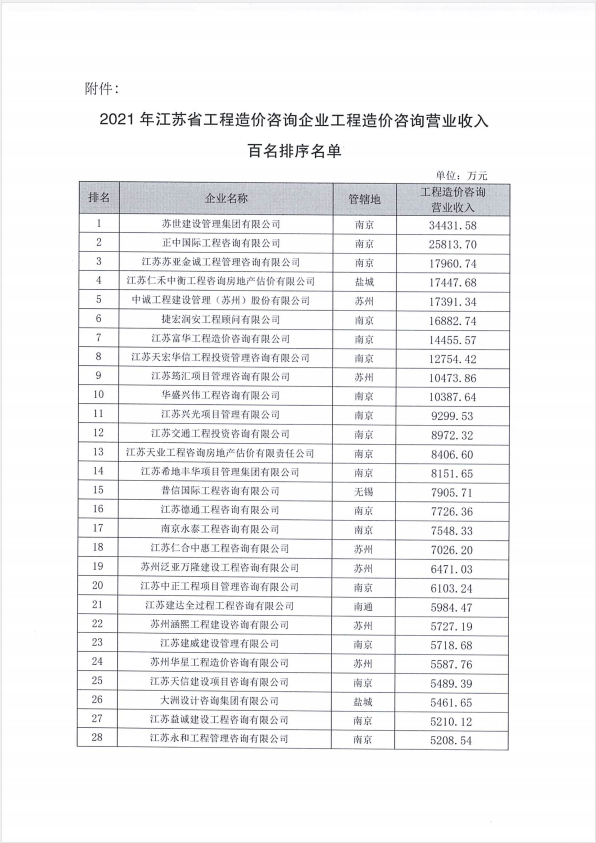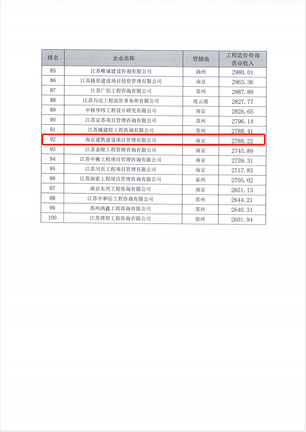 熱烈祝賀我司造價(jià)機(jī)構(gòu)進(jìn)入“2021年江蘇省工程造價(jià)咨詢企業(yè)工程造價(jià)咨詢營(yíng)業(yè)收入”百?gòu)?qiáng)名單