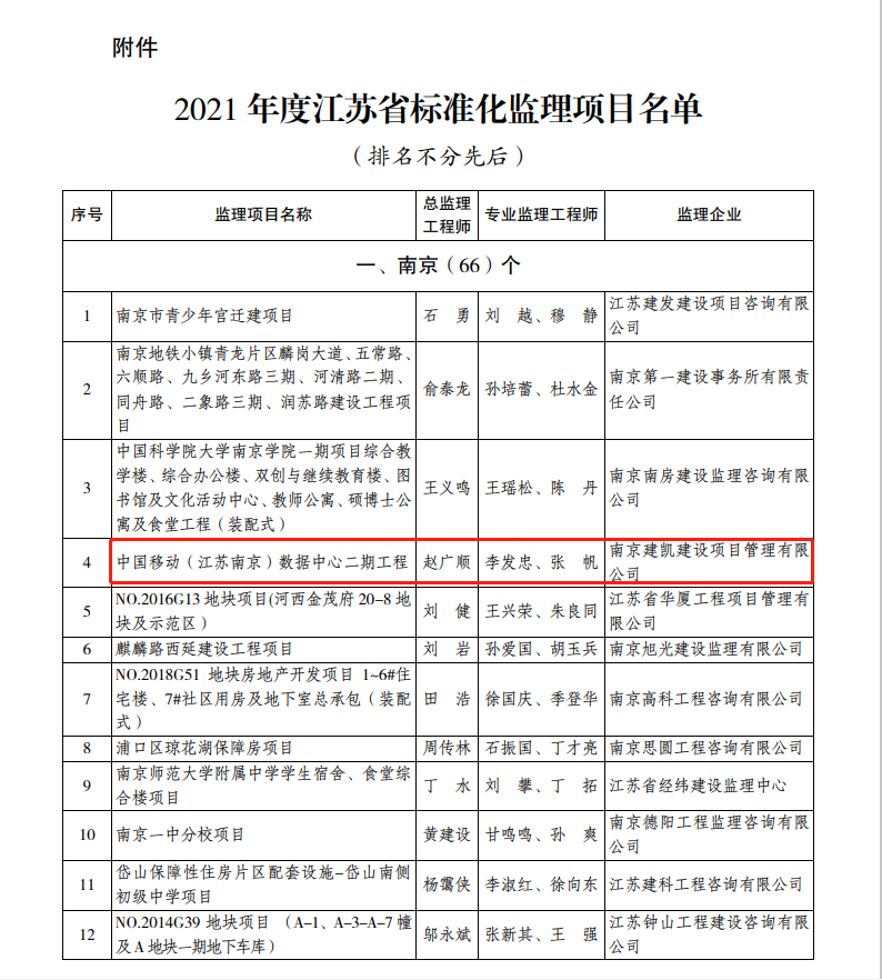 恭喜我司2個監(jiān)理項目評選為“2021年度江蘇省標準化監(jiān)理項目”