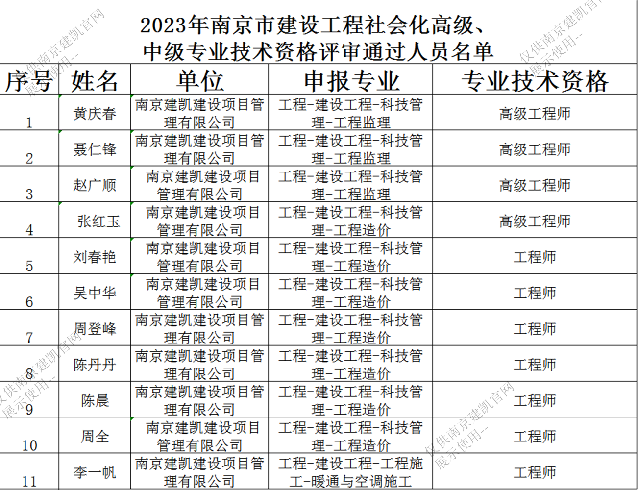 恭喜我司以下人員通過2023年南京市建設工程社會化高級、 中級專業(yè)技術資格評審