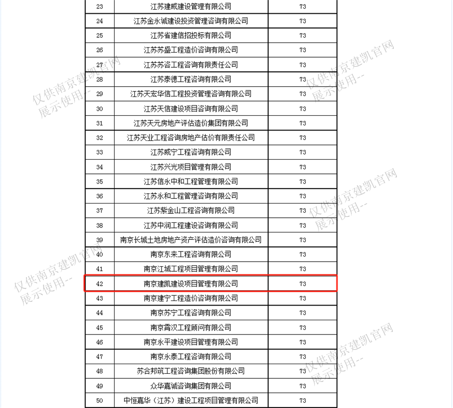 恭喜我司入選“南京市2024年二季度工程造價咨詢企業(yè)信用分值排名前20%企業(yè)名單”