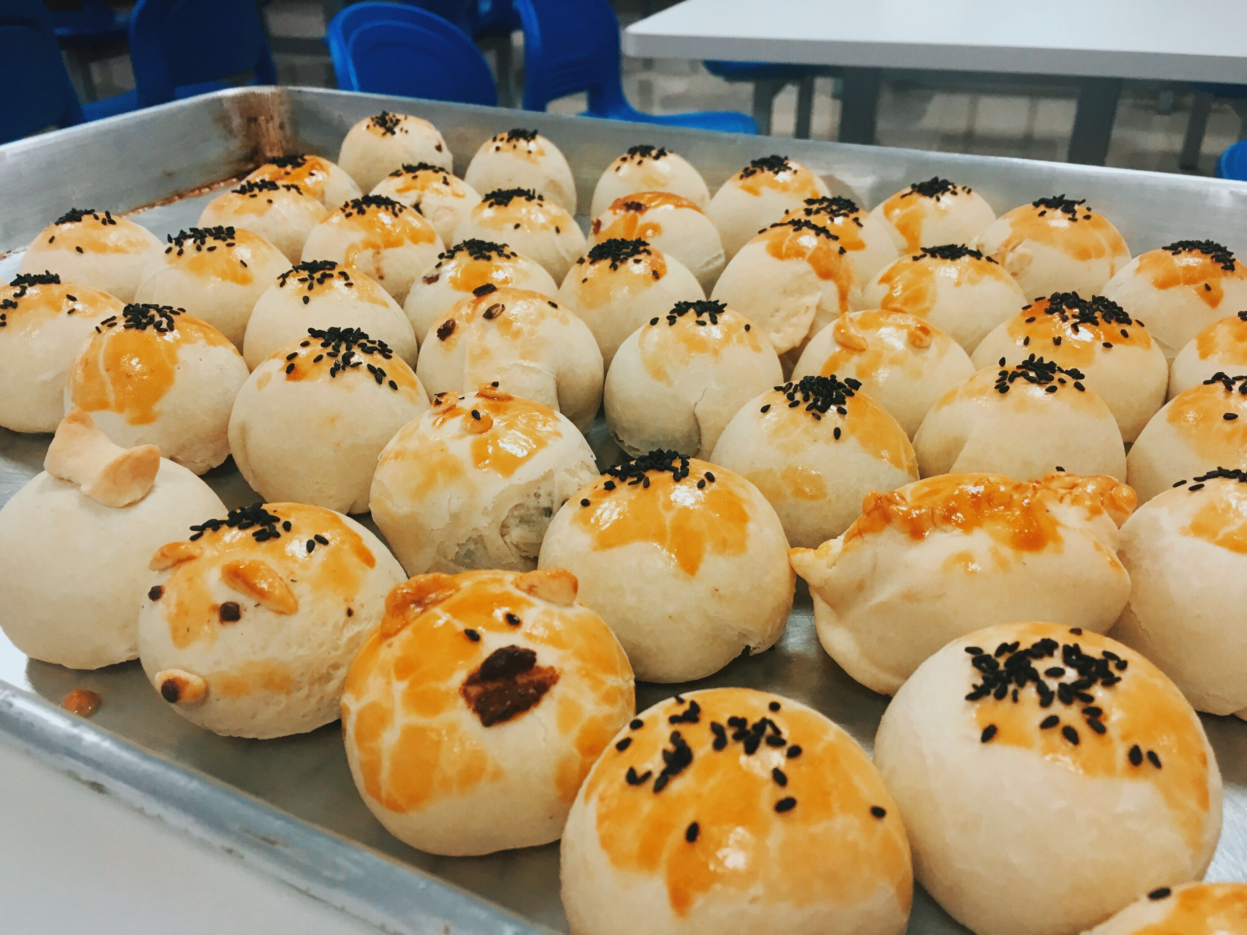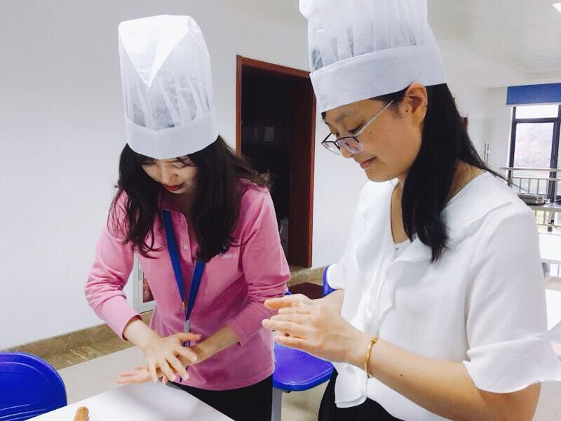 為了做好這關(guān)鍵的“酥皮”,面點(diǎn)師傅貼心地為大家準備好了油酥面團。但如何讓這外皮層層起酥,面團的折疊、松弛和均勻搟壓可是重點(diǎn)。“老師,是這么折疊嗎?”、“老師,我這搟得對不對?”食堂里不時(shí)傳來(lái)大家虛心好學(xué)的詢(xún)問(wèn)聲。包餡、搓圓和涂抹蛋液……沒(méi)多久,送進(jìn)了烤箱的月餅就散發(fā)出了誘人的香味。