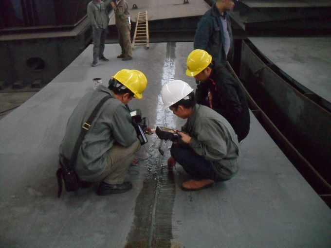 為了加強鋼結構制作的過(guò)程檢驗和質(zhì)量控制,確保施工質(zhì)量,服務(wù)于工程現場(chǎng),2011年5月10日~12日,寧波市交通建設工程試驗檢測中心派員赴江蘇鋼箱梁制作單位對寧波穿好至好思房公路工程預制鋼箱梁進(jìn)行廠(chǎng)內焊縫探傷檢測。