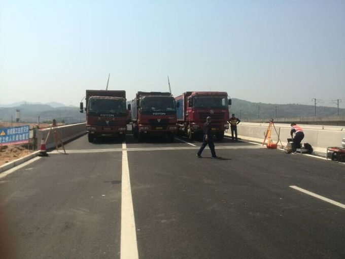 2015年4月16日~21日,寧波市交通建設工程試驗檢測中心有限公司對寧??h甬臨線(xiàn)復線(xiàn)洋溪大橋進(jìn)行了橋梁靜動(dòng)載試驗。甬臨線(xiàn)是寧波通往臺州方向唯一一條高等級地方公路,和盛寧線(xiàn)、象西線(xiàn)組成寧??h的陸路交通主骨架,其復線(xiàn)工程洋溪大橋為本項目主要橋梁工程,洋溪大橋跨徑布置都為3×32.6+4×32.6+3×32.6=326m,為上下行分幅設計;車(chē)行道橋的結構形式都為現澆預應力混凝土箱梁。人行道橋4×32.6m聯(lián)采用現澆預應力混凝土箱梁,4×32.6m采用跨越式飛鳥(niǎo)拱橋,拱肋、橋塔和吊桿作為該聯(lián)箱梁的輔助受力構件。本次針對業(yè)主指定橋跨左幅第1聯(lián),右幅第1聯(lián),右幅第2聯(lián)進(jìn)行靜動(dòng)載試驗,經(jīng)過(guò)檢測人員的辛勤工作,順利完成本次試驗任務(wù)。