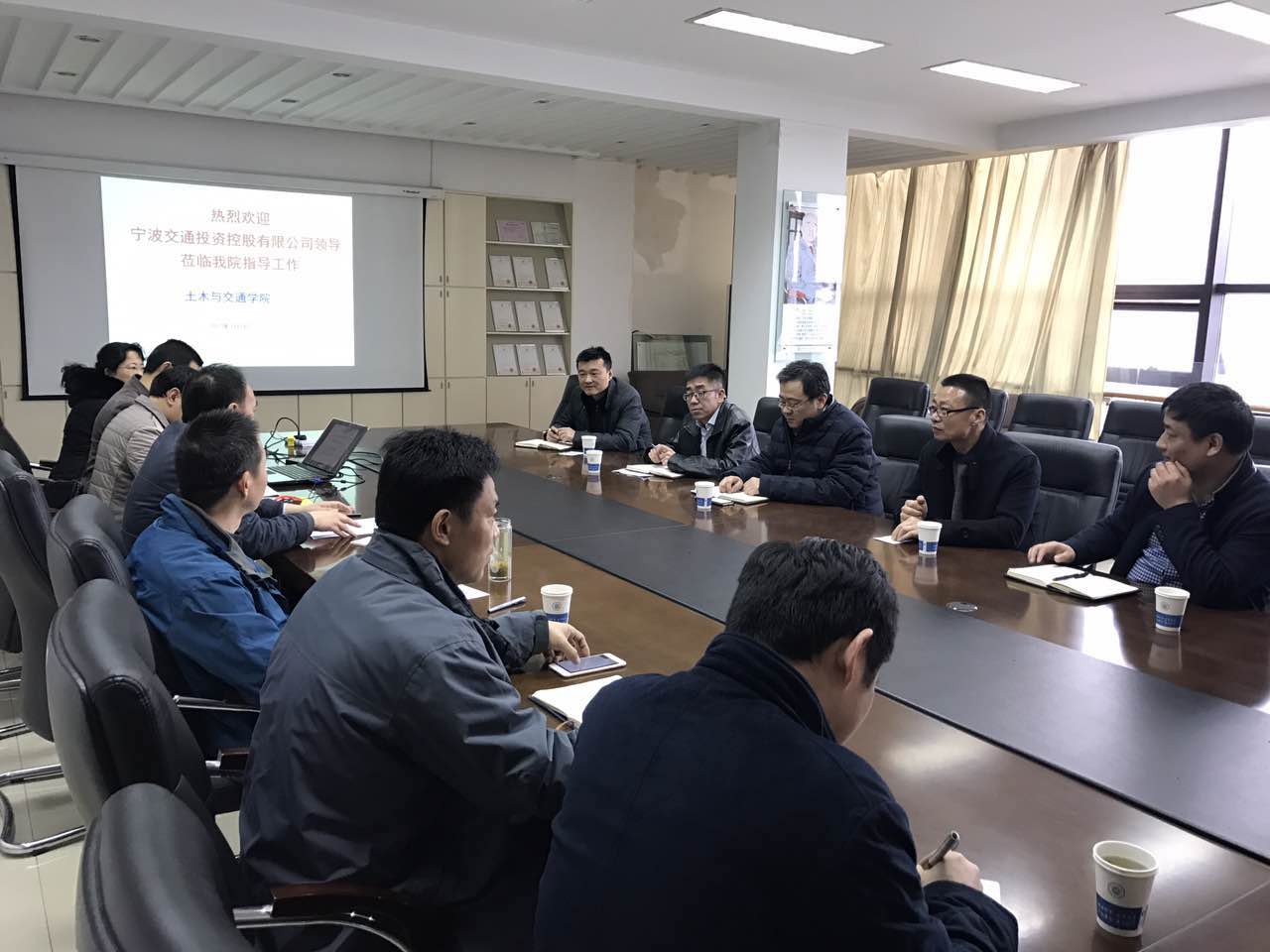 為學(xué)習借鑒科研院校在交通科技研發(fā)領(lǐng)域的先進(jìn)經(jīng)驗,3月1日,控股公司副總經(jīng)理姚曄帶隊,檢測公司董事長(cháng)許路平、總經(jīng)理方繼偉等一行人員前往河海大學(xué)土木與交通學(xué)院開(kāi)展學(xué)習調研。河海大學(xué)土木與交通學(xué)院黨委書(shū)記吳海寶、副院長(cháng)劉軍及相關(guān)院系負責人對調研團的到來(lái)表示了熱烈歡迎。
