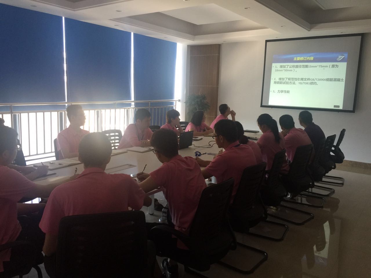 此次新規范學(xué)習由該項目負責人應震華主講,主要就《預應力混凝土用螺紋鋼筋》(GB/T 20065-2016)新增內容、引用標準、力學(xué)性能等方面進(jìn)行詳細講解。隨后,試驗部主任以書(shū)面考試的形式對學(xué)習結果進(jìn)行了考核。