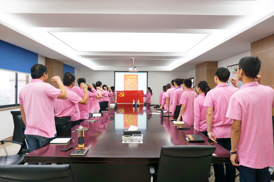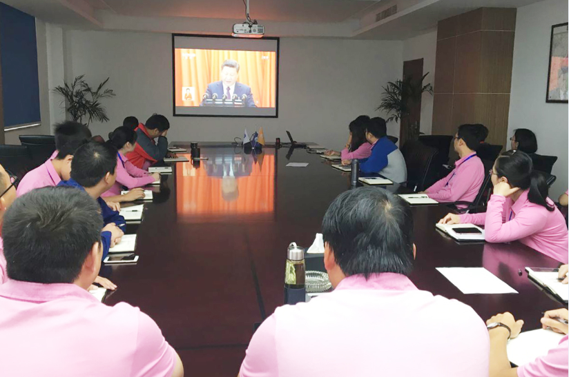 大會(huì )開(kāi)幕當天,公司全體黨員佩戴黨徽,齊聚會(huì )議室,舉起右拳,面向鮮紅的黨旗,一起莊嚴地重溫入黨誓詞,以昂揚的姿態(tài)和飽滿(mǎn)的熱情聆聽(tīng)十九大報告,學(xué)習十九大精神。