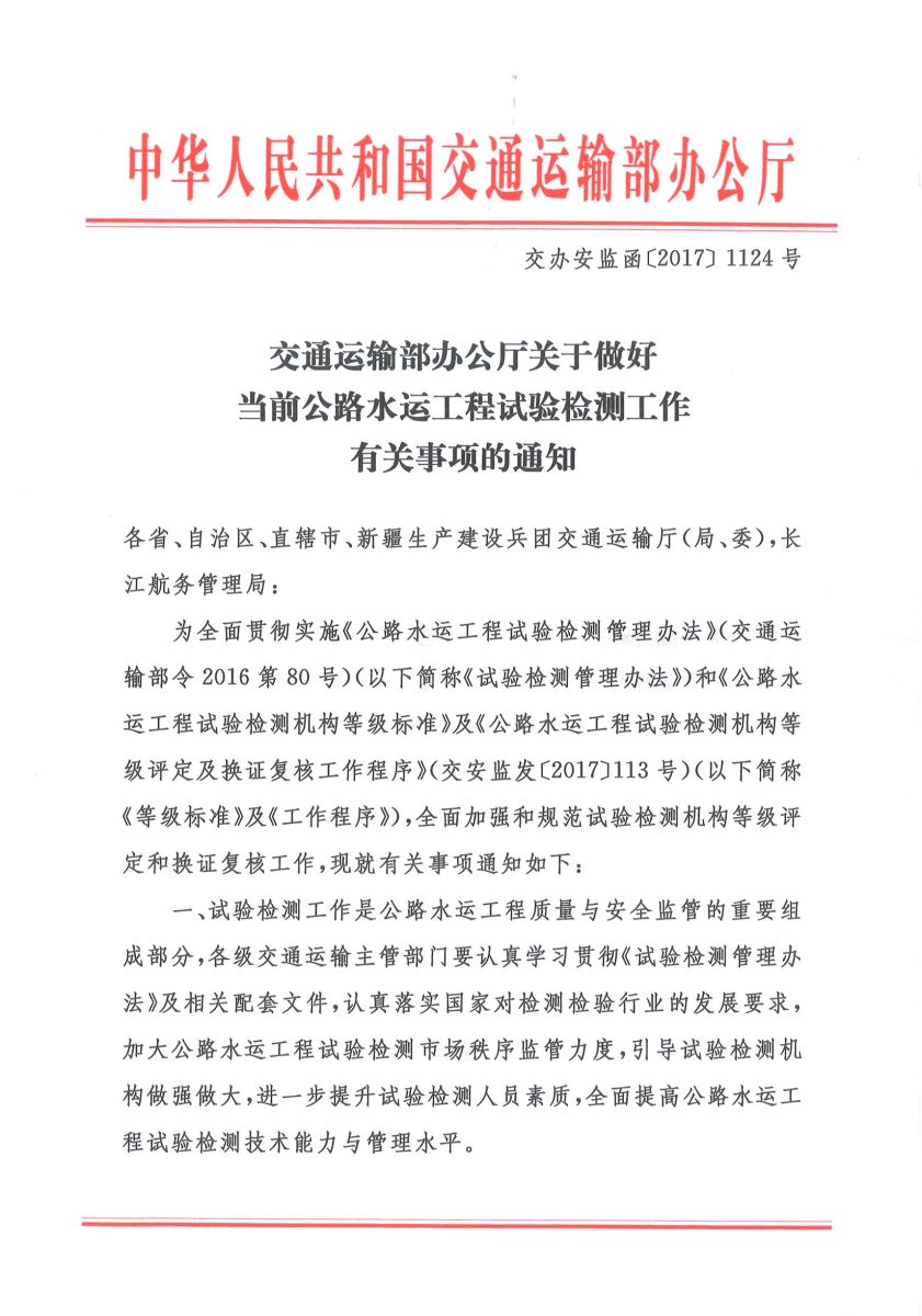 附件:交通運輸部辦公廳關(guān)于做好當前公路水運工程試驗檢測工作有關(guān)事項的通知